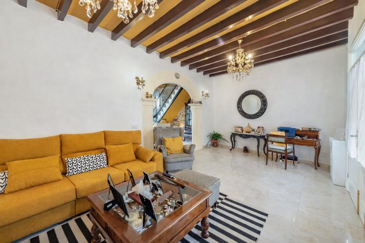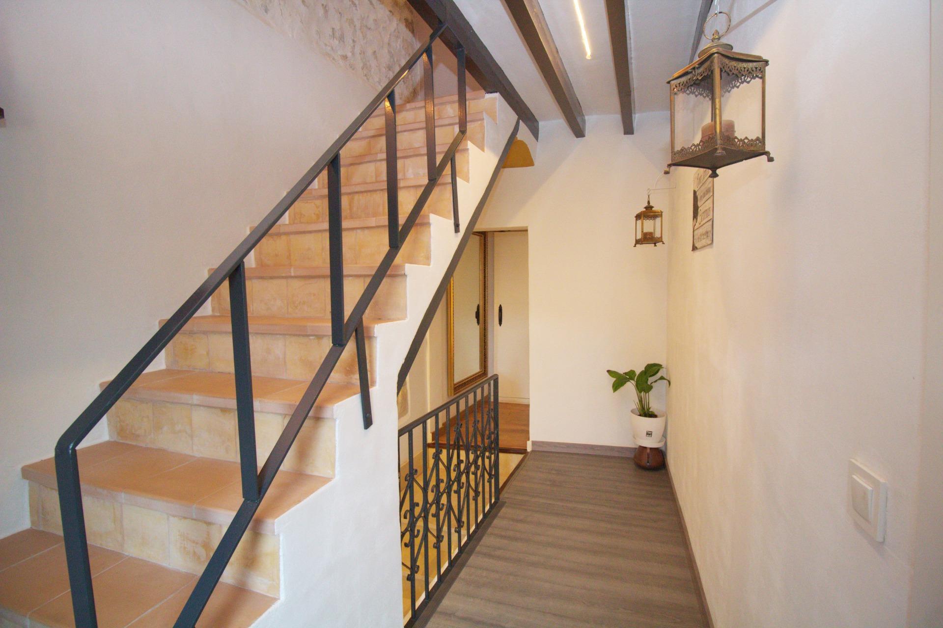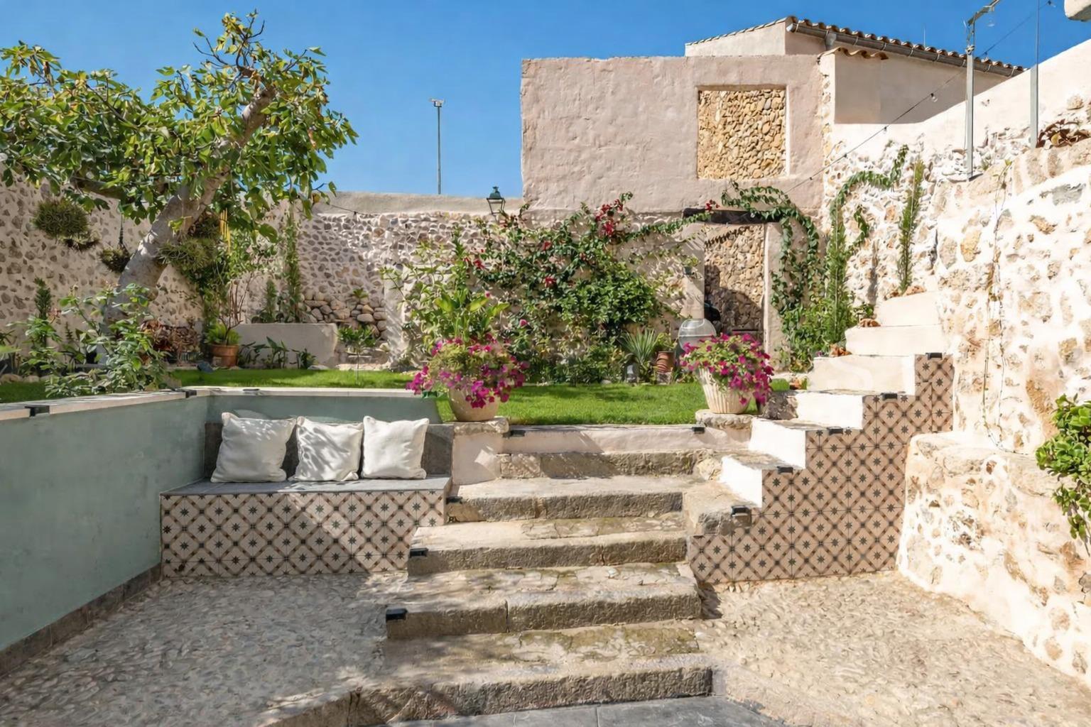 Encantadora casa de pueblo con alma mallorquina y vistas a la Sierra de Tramuntana en el corazón de Campanet Hay casas que simplemente se visitan… y otras que se sienten desde el primer instante. Esta preciosa casa de pueblo en el centro de Campanet pertenece a estas últimas: un hogar lleno de carácter, luz y autenticidad, donde cada detalle respira tradición mallorquina y donde las vistas abiertas a la majestuosa Sierra de Tramuntana acompañan cada momento del día. Situada a pocos pasos de la encantadora Plaza Mayor, la vivienda combina a la perfección el encanto de la arquitectura tradicional con el confort de una casa lista para disfrutarse. Su maravilloso patio-jardín mediterráneo se convierte en uno de los espacios más especiales de la propiedad: un rincón íntimo y tranquilo donde desayunar al sol, compartir largas veladas de verano o simplemente contemplar las montañas que se alzan en el horizonte. Al entrar en la casa, un acogedor salón con techos altos y vigas de madera vistas da la bienvenida, transmitiendo inmediatamente una sensación de calidez y hogar. Un elegante arco de marés conecta este espacio con la cocina-comedor, un detalle arquitectónico que realza el carácter mallorquín de la vivienda. La cocina se abre directamente al patio, creando una conexión natural entre interior y exterior que invita a disfrutar de la vida mediterránea en su máxima expresión. La escalera original, cuidadosamente conservada y acompañada de muros de piedra vista, añade aún más personalidad y autenticidad al conjunto. En la primera planta encontramos dos amplios dormitorios dobles: uno con baño en suite y otro con vestidor, además de un baño con ducha situado junto a la escalera. La planta superior alberga la habitación principal con baño integrado, un espacio amplio y luminoso que ofrece múltiples posibilidades, incluso la opción de dividirse para crear un dormitorio adicional si se desea. La casa se vende completamente amueblada y está lista para entrar a vivir. Además, cuenta con una licencia ejecutiva aprobada que permite realizar interesantes mejoras, como la construcción de una piscina, una terraza en la primera planta, elevar la altura de la segunda planta o transformar la edificación del patio en una encantadora casa de invitados o estudio independiente. Proyectos que, aunque no imprescindibles, representan una excelente oportunidad para personalizar la propiedad y aumentar su valor. La vivienda dispone de calefacción mediante estufa de pellets, una práctica coladuría en el patio y un pozo de recogida de agua de lluvia ideal para el riego durante los meses de verano. Aunque no cuenta con garaje privado, se encuentra junto a un aparcamiento público que aporta gran comodidad en el día a día. Campanet es uno de los pueblos con más encanto del interior de Mallorca. Con aproximadamente 2.600 habitantes, conserva un ambiente auténtico, tranquilo y residencial, lejos del turismo masivo. Situado entre llanuras y montañas, se encuentra a tan solo 15 minutos de la playa y a unos 30 minutos de Palma y del aeropuerto, con excelentes conexiones por carretera y transporte público hacia Inca y el resto de la isla. Sus estrechas calles conducen a la hermosa Plaça Major, presidida por su iglesia barroca del siglo XVIII y rodeada de cafés y restaurantes llenos de vida. El pueblo ofrece todos los servicios básicos, un mercado semanal con productos frescos y locales cada martes, así como algunos de los parajes naturales más especiales de Mallorca, como las famosas Cuevas de Campanet, la histórica ermita de Sant Miquel del siglo XIII y las impresionantes fuentes naturales de Ses Ufanes, que brotan tras las fuertes lluvias. Una propiedad única que combina historia, carácter y vistas inolvidables, perfecta tanto como residencia habitual como segunda vivienda para disfrutar de la esencia más auténtica de la vida mediterránea.