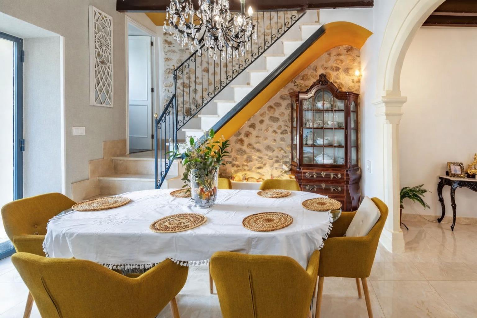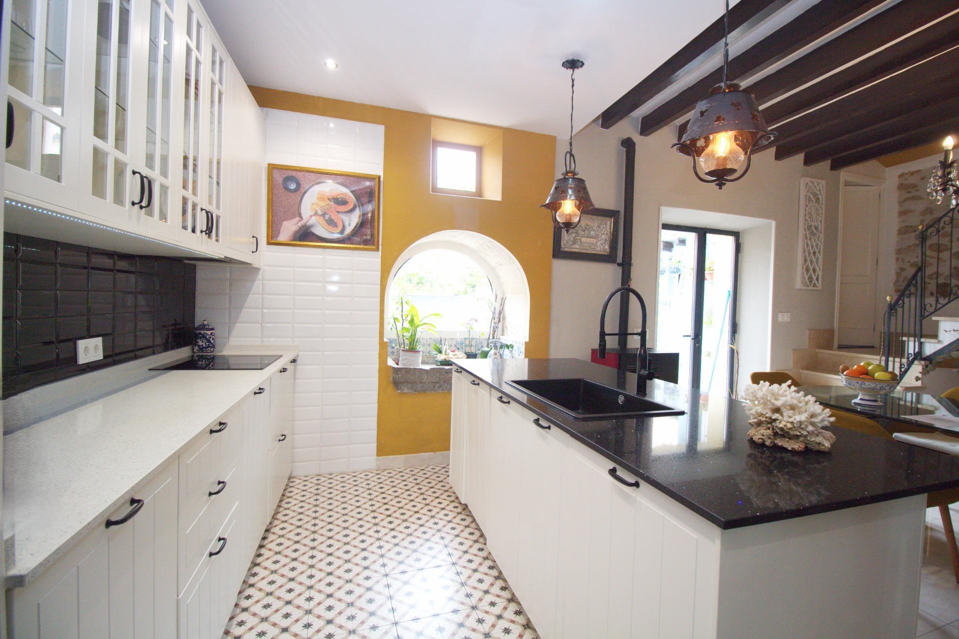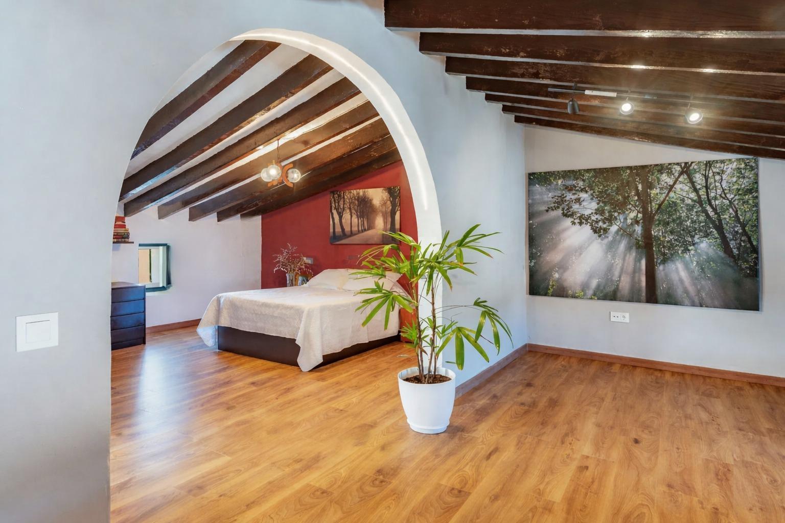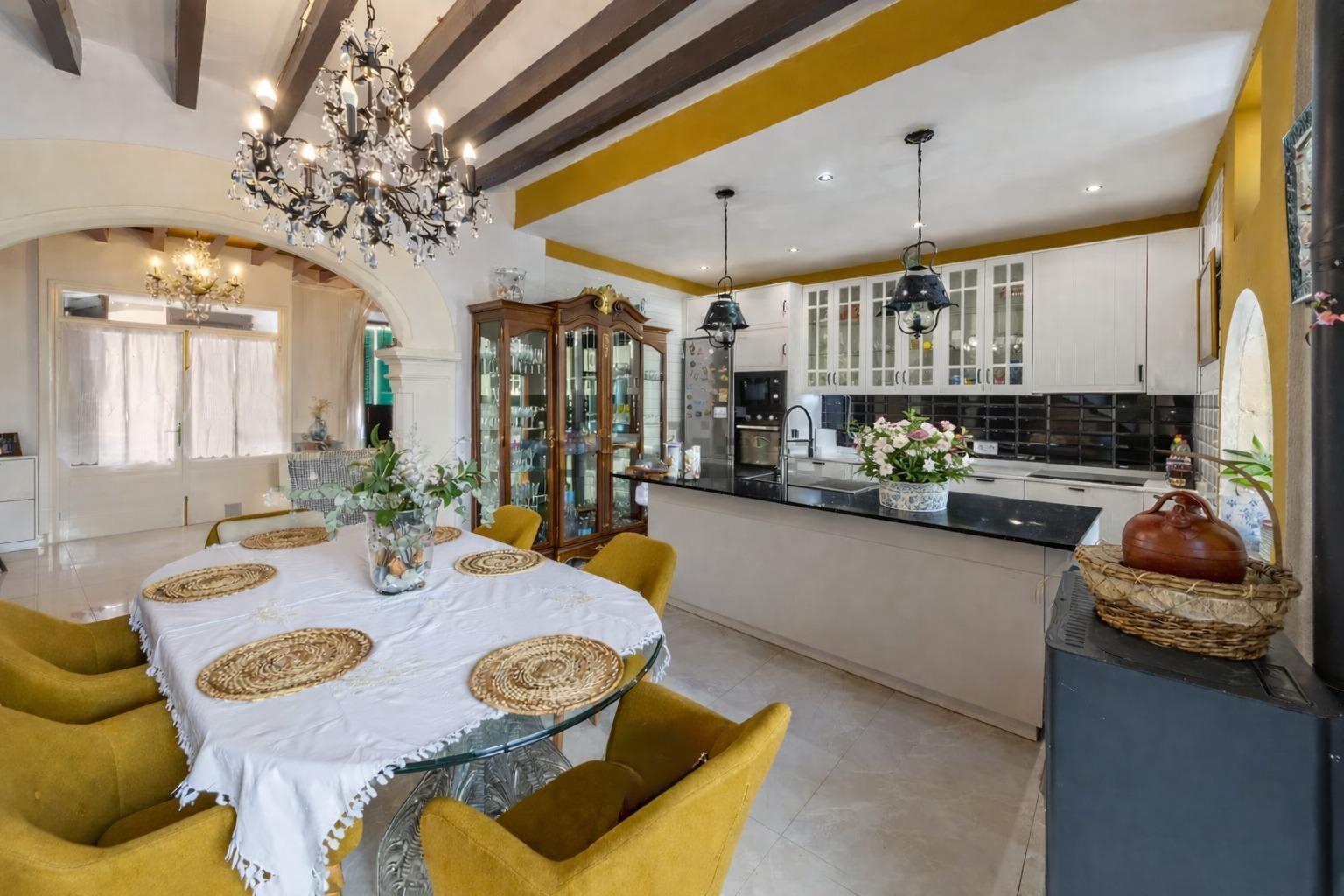 Encantadora casa de pueblo con alma mallorquina y vistas a la Sierra de Tramuntana en el corazón de Campanet Hay casas que simplemente se visitan… y otras que se sienten desde el primer instante. Esta preciosa casa de pueblo en el centro de Campanet pertenece a estas últimas: un hogar lleno de carácter, luz y autenticidad, donde cada detalle respira tradición mallorquina y donde las vistas abiertas a la majestuosa Sierra de Tramuntana acompañan cada momento del día. Situada a pocos pasos de la encantadora Plaza Mayor, la vivienda combina a la perfección el encanto de la arquitectura tradicional con el confort de una casa lista para disfrutarse. Su maravilloso patio-jardín mediterráneo se convierte en uno de los espacios más especiales de la propiedad: un rincón íntimo y tranquilo donde desayunar al sol, compartir largas veladas de verano o simplemente contemplar las montañas que se alzan en el horizonte. Al entrar en la casa, un acogedor salón con techos altos y vigas de madera vistas da la bienvenida, transmitiendo inmediatamente una sensación de calidez y hogar. Un elegante arco de marés conecta este espacio con la cocina-comedor, un detalle arquitectónico que realza el carácter mallorquín de la vivienda. La cocina se abre directamente al patio, creando una conexión natural entre interior y exterior que invita a disfrutar de la vida mediterránea en su máxima expresión. La escalera original, cuidadosamente conservada y acompañada de muros de piedra vista, añade aún más personalidad y autenticidad al conjunto. En la primera planta encontramos dos amplios dormitorios dobles: uno con baño en suite y otro con vestidor, además de un baño con ducha situado junto a la escalera. La planta superior alberga la habitación principal con baño integrado, un espacio amplio y luminoso que ofrece múltiples posibilidades, incluso la opción de dividirse para crear un dormitorio adicional si se desea. La casa se vende completamente amueblada y está lista para entrar a vivir. Además, cuenta con una licencia ejecutiva aprobada que permite realizar interesantes mejoras, como la construcción de una piscina, una terraza en la primera planta, elevar la altura de la segunda planta o transformar la edificación del patio en una encantadora casa de invitados o estudio independiente. Proyectos que, aunque no imprescindibles, representan una excelente oportunidad para personalizar la propiedad y aumentar su valor. La vivienda dispone de calefacción mediante estufa de pellets, una práctica coladuría en el patio y un pozo de recogida de agua de lluvia ideal para el riego durante los meses de verano. Aunque no cuenta con garaje privado, se encuentra junto a un aparcamiento público que aporta gran comodidad en el día a día. Campanet es uno de los pueblos con más encanto del interior de Mallorca. Con aproximadamente 2.600 habitantes, conserva un ambiente auténtico, tranquilo y residencial, lejos del turismo masivo. Situado entre llanuras y montañas, se encuentra a tan solo 15 minutos de la playa y a unos 30 minutos de Palma y del aeropuerto, con excelentes conexiones por carretera y transporte público hacia Inca y el resto de la isla. Sus estrechas calles conducen a la hermosa Plaça Major, presidida por su iglesia barroca del siglo XVIII y rodeada de cafés y restaurantes llenos de vida. El pueblo ofrece todos los servicios básicos, un mercado semanal con productos frescos y locales cada martes, así como algunos de los parajes naturales más especiales de Mallorca, como las famosas Cuevas de Campanet, la histórica ermita de Sant Miquel del siglo XIII y las impresionantes fuentes naturales de Ses Ufanes, que brotan tras las fuertes lluvias. Una propiedad única que combina historia, carácter y vistas inolvidables, perfecta tanto como residencia habitual como segunda vivienda para disfrutar de la esencia más auténtica de la vida mediterránea.