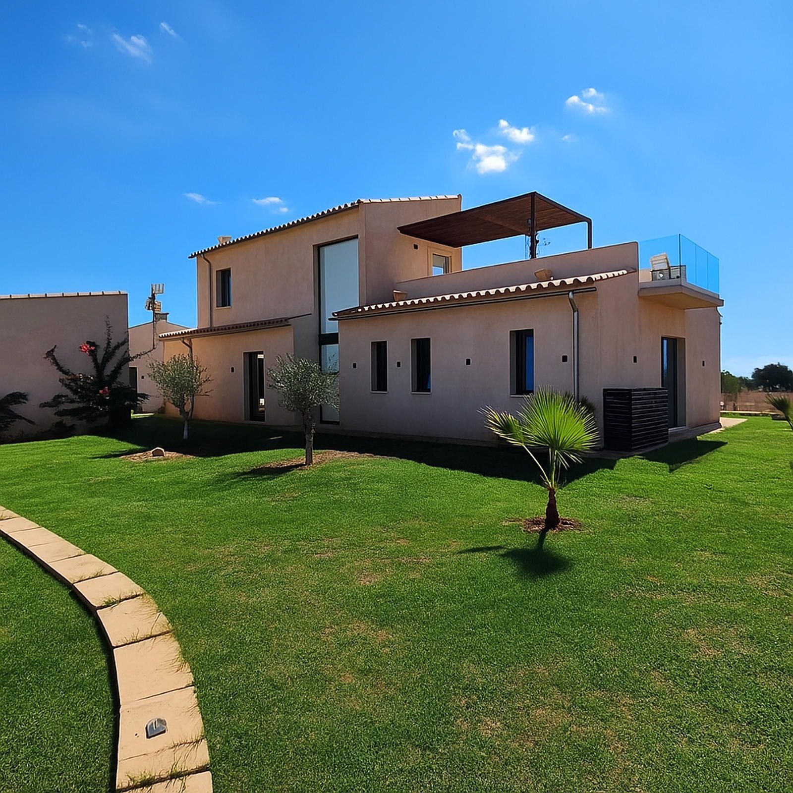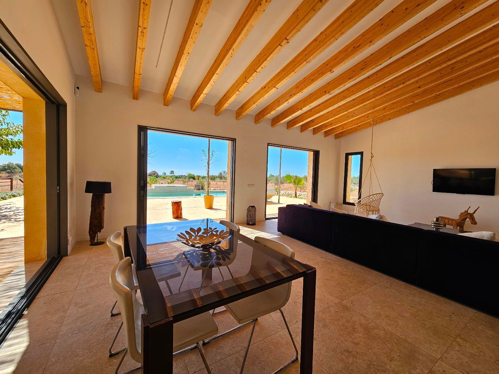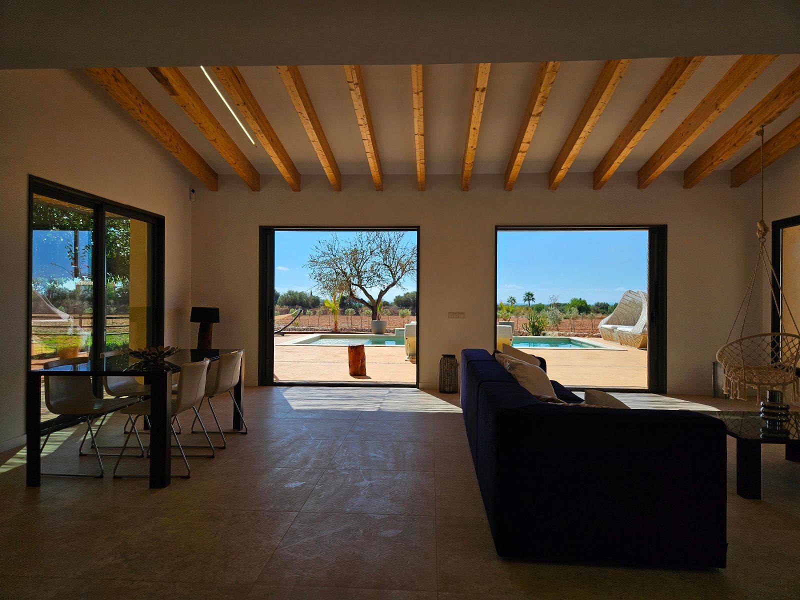 Presentamos una exclusiva propiedad de obra nueva, ubicada en el corazón de Mallorca, una joya única que combina a la perfección el lujo moderno con la esencia de la construcción tradicional mallorquina con licencia vacacional de hasta 8 personas. Situada en una parcela de 28.000 m², a tan solo 5 minutos del encantador pueblo de Campos, y a 25 minutos de Palma y su prestigioso Club Náutico, esta finca ofrece una ubicación privilegiada y los días más despejados vistas espectaculares a la isla de Cabrera, con las idílicas playas de Sa Ràpita y la popular playa de Es Trenc a solo 15 minutos. Con 340 m² construidos, la villa dispone de 4 dormitorios y 4 baños, diseñada de tal manera para que una parte de la casa pueda funcionar como una casa independiente. El salón principal de 80 m² se baña en luz natural gracias a sus ventanas de diseño que se abren completamente, fusionando el interior con el exterior, cocina totalmente equipada con los mejores electrodomésticos de diseño abierto y muy moderno. La terraza exterior de 271 m² es un verdadero oasis con una piscina espectacular de 36,5 m² que incluye zona de playa, impulsores tipo jacuzzi y cascadas. El jardín, actualmente en diseño, ofrece a los nuevos propietarios la oportunidad de personalizarlo a su gusto, y desde la terraza del primer piso, con barandilla de cristal, se pueden disfrutar vistas panorámicas de 360º y espectaculares puestas de sol. La villa cuenta con acceso asfaltado hasta la entrada, además cuenta con una amplia zona de aparcamiento exterior y un punto de carga para vehículos eléctricos, luz de Gesa, climatización por conductos y licencia para instalar placas solares, además de dos aljibes de fácil acceso con capacidad para 40.000 litros y una licencia recientemente obtenida para un pozo de agua subterránea de alta calidad. Licencia agrícola que permite la cría de caballos, ovejas o gallinas, esta propiedad combina el encanto rústico con un estilo de vida de lujo. Es más que una residencia, es una oportunidad única e irrepetible de inversión, donde la personalización según los deseos de los nuevos propietarios añade un valor añadido a esta finca de ensueño en Mallorca. No dude en concertar una visita.